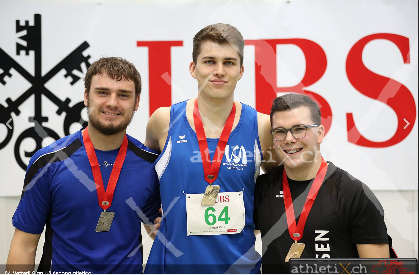 Gian Vetterli campione svizzero junior nel peso 6Kg. Con m15.90 ha cancellato il record ticinese indoor che apparteneva a un certo Bernaschina (campione svizzero di decathlon) la misura sarebbe anche record autdoor (15.11 sempre Bernaschina), ma non é solo questo il risultato eclatante. I nostri si sono presi altre medaglie di metalli differenti ma di peso considerevole. Emma Piffaretti si é piazzata terza con 7.61 nei 60m col medesimo tempo della seconda (peccato che non c’erano i millesimi) comunque bronzo e si é riscattata nei 60mH con l’argeto nel tempo di 8.63 dietro a una Kambundji Ditaji sorellina di una più famosa Mujinga. Un altro bronzo lo ha conquistato col medesimo tempo del secondo (e si ripete) Giovanni Pirolli nei 60m con 7.39 purtroppo infortunatosi nello scontro con i tappetoni posti a freno dei 60m, auguri Giovanni di pronta guarigione.